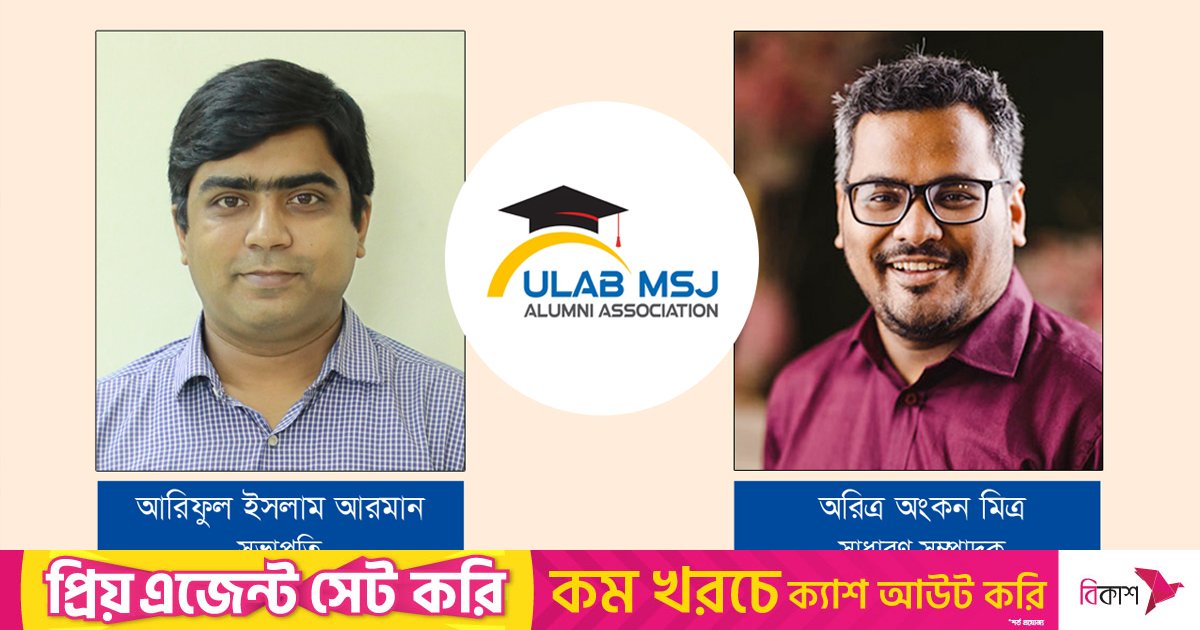 ইউনিভার্সিটি অব লিবারেল আর্টস বাংলাদেশের (ইউল্যাব) মিডিয়া স্টাডিজ অ্যান্ড জার্নালিজম (এমএসজে) বিভাগের অ্যালামনাই অ্যাসোসিয়েশনের নির্বাচন অনুষ্ঠিত হয়েছে। ২০২৩-২৪ মেয়াদের এই কার্যনির্বাহী কমিটিতে সভাপতি ও সাধারণ সম্পাদক হিসেবে যথাক্রমে আরিফুল ইসলাম আরমান ও অরিত্র অংকন মিত্র নির্বাচিত হয়েছেন।